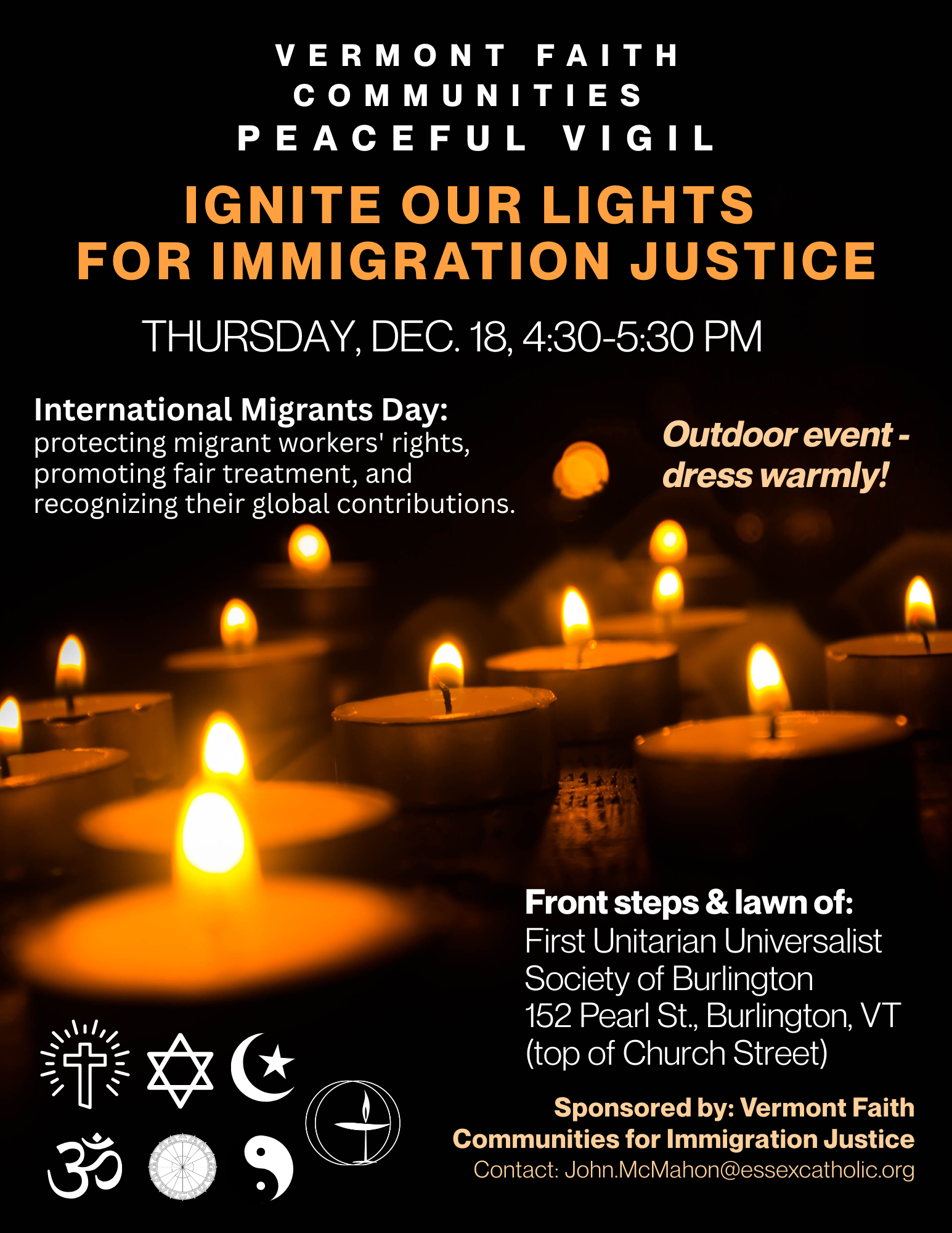 I have been honored as a keynote speaker for the "Ignite Our Lights for Immigration Justice" vigil on Dec. 18 (4:30 PM) at Burlington’s First UU Society. Join us to celebrate this milestone and stand in solidarity for the dignity and rights of all immigrants.